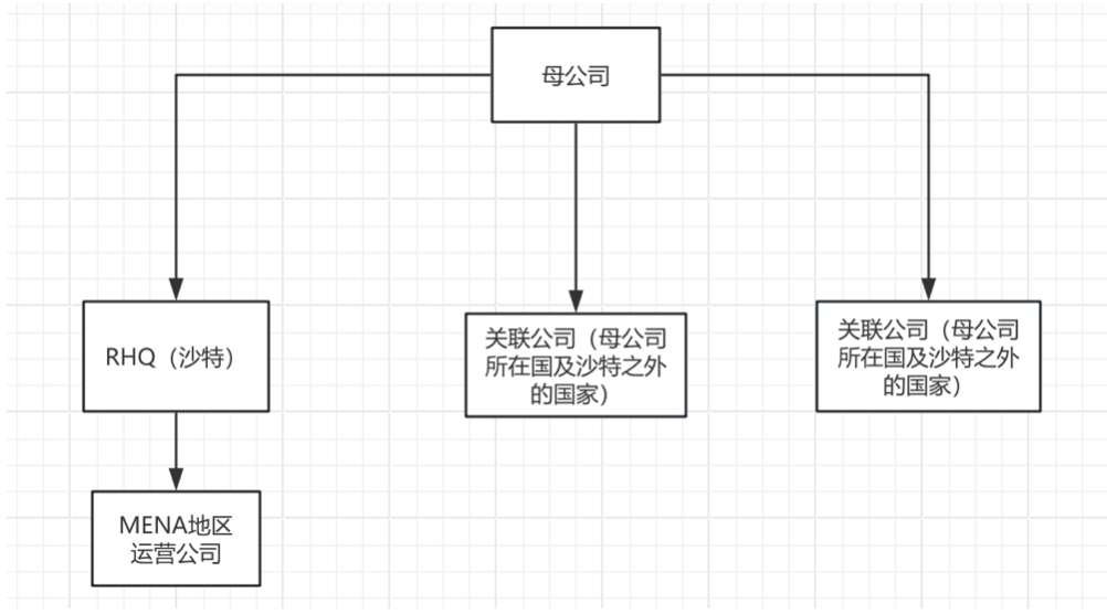 沙特阿拉伯的区域总部(RHQ)是指一个跨国集团为了支持、管理其在中东和北非地区(MENA)运营的分支机构、子公司和关联公司,在沙特阿拉伯设立区域总部,区域总部可以是子公司或者分公司的组织形式。公司架构如下: